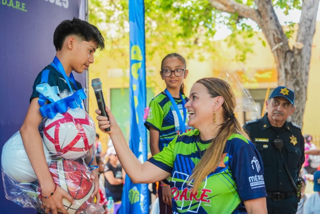 “Una sociedad más segura, haciendo comunidad, es lo que buscamos todos los días en el Ayuntamiento de Mérida, y D.A.R.E. es justo eso, una forma de crear cohesión social entre la niñez y las adolescencias para preservar la paz y la armonía que tanto amamos meridianas y meridianos”, destacó la alcaldesa desde el emblemático Paseo de Montejo, antes de dar la salida a las carreras conmemorativas.