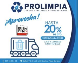Progreso, Yuc 16 de nov.— El Ayuntamiento de Progreso, encabezado por el alcalde Erik Rihani González, informa a la ciudadanía sobre la promoción especial de regularización por el Buen Fin, impulsada a través de Prolimpia, con el objetivo de apoyar la economía familiar y fortalecer el servicio de recolección.