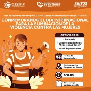 Progreso, Yuc 17 de nov.— Con la finalidad de sensibilizar a la población y enviar un mensaje de solidaridad, el Ayuntamiento de Progreso, que preside el alcalde Erik Rihani González, invita a la comunidad en general a participar en la Caminata Pacífica por el Día Internacional para la Eliminación de la Violencia contra las Mujeres, con ello se refrenda el compromiso por continuar cuidando de las mujeres porteñas.