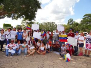 Los migrantes venezolanos, algunos de ellos con casi 12 años en la capital yucateca hicieron presente sus expresiones reclamando la libertad y la recuperación de la vida social y política, perdida desde el inicio de la dictadura de Hugo Chávez, iniciador de la era “chavista” hace 24 años, que ha dejado una situación de crisis, desesperación, persecución política con miles de ciudadanos en esa nación sudamericana.