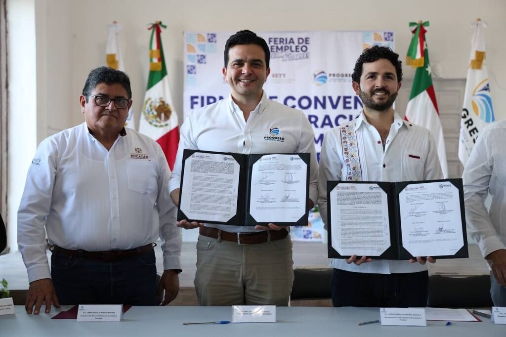 El convenio fue suscrito por el titular de la SETY, Jorge Ermilo Barrera Novelo, acompañado por el director del Servicio Nacional de Empleo Yucatán, Omar Eloy Álvarez Moguel, y por parte del municipio, el alcalde Erik Rihani González, refrendando el compromiso de trabajar de manera coordinada para promover la generación de empleos y el bienestar social en Progreso.