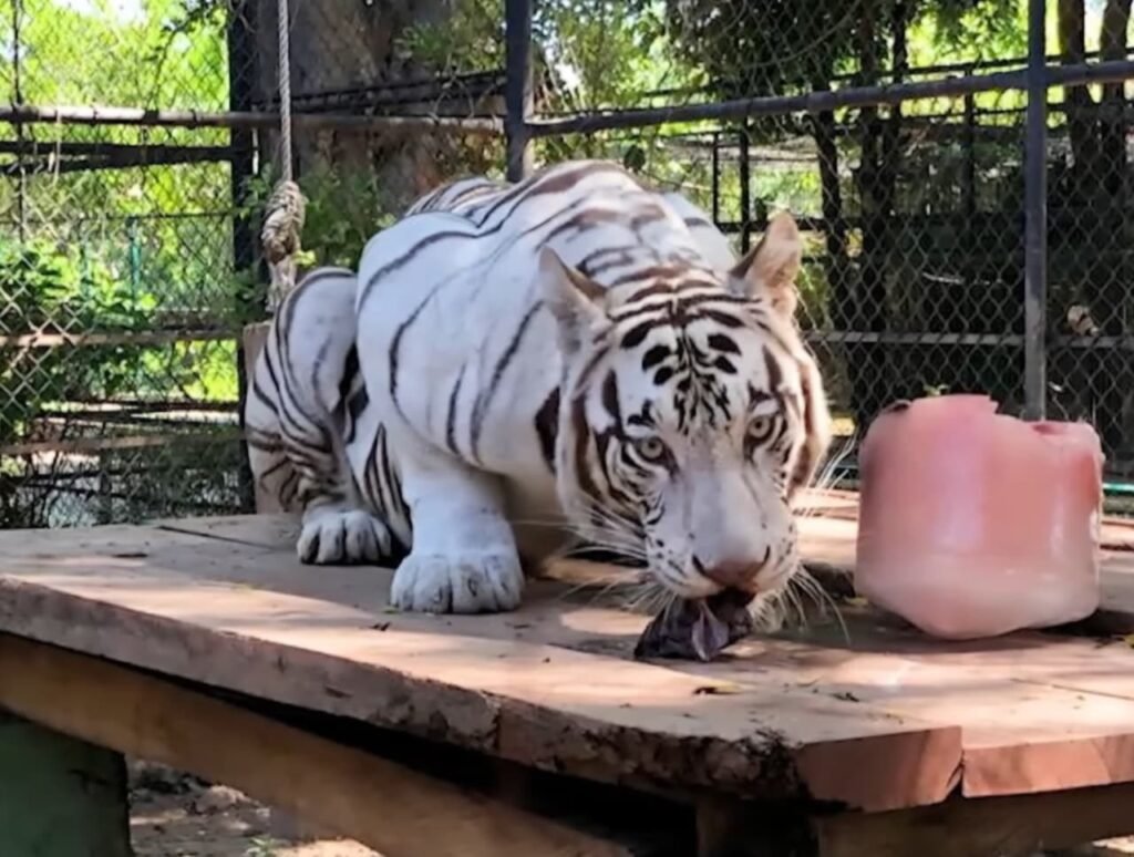 Traslado del tigre blanco al felinario “Balam, Balam”