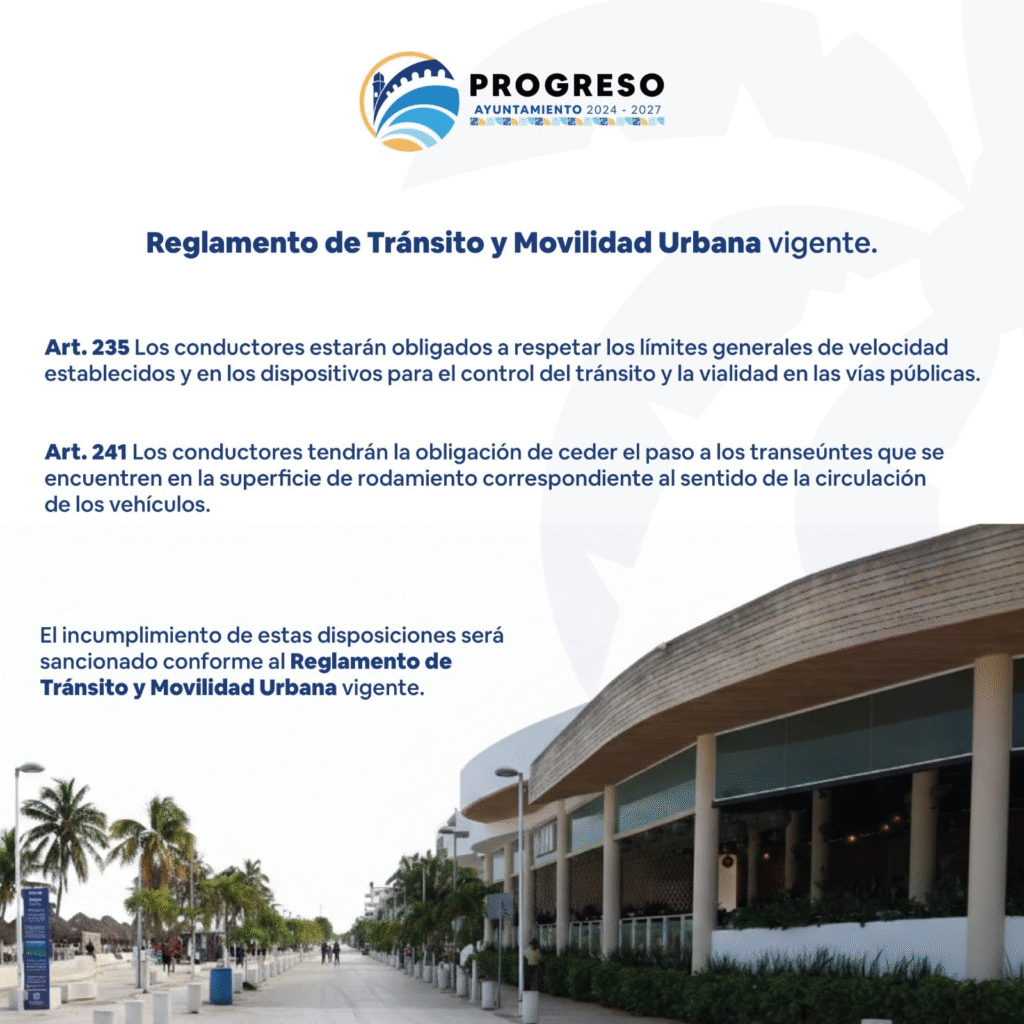 Con el objetivo de fortalecer la seguridad vial y garantizar una convivencia armónica en uno de los espacios más representativos del municipio, el H. Ayuntamiento de Progreso invita a la ciudadanía a disfrutar del Malecón Tradicional
