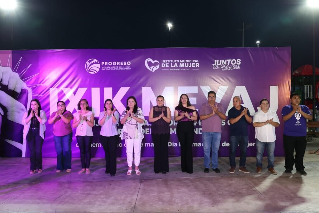 Progreso, Yuc 7 de marzo.– Con el objetivo de reconocer la participación de las mujeres en la vida social y comunitaria, el Ayuntamiento de Progreso, encabezado por el alcalde Erik Rihani González, a través del Instituto Municipal de la Mujer, encabezado por Luz Geovana Padrón Martínez, llevó a cabo la actividad “Ixik Meyaj, mujeres trabajando”, realizada en el Parque Morelos, en el marco del Día Internacional de la Mujer 2026.