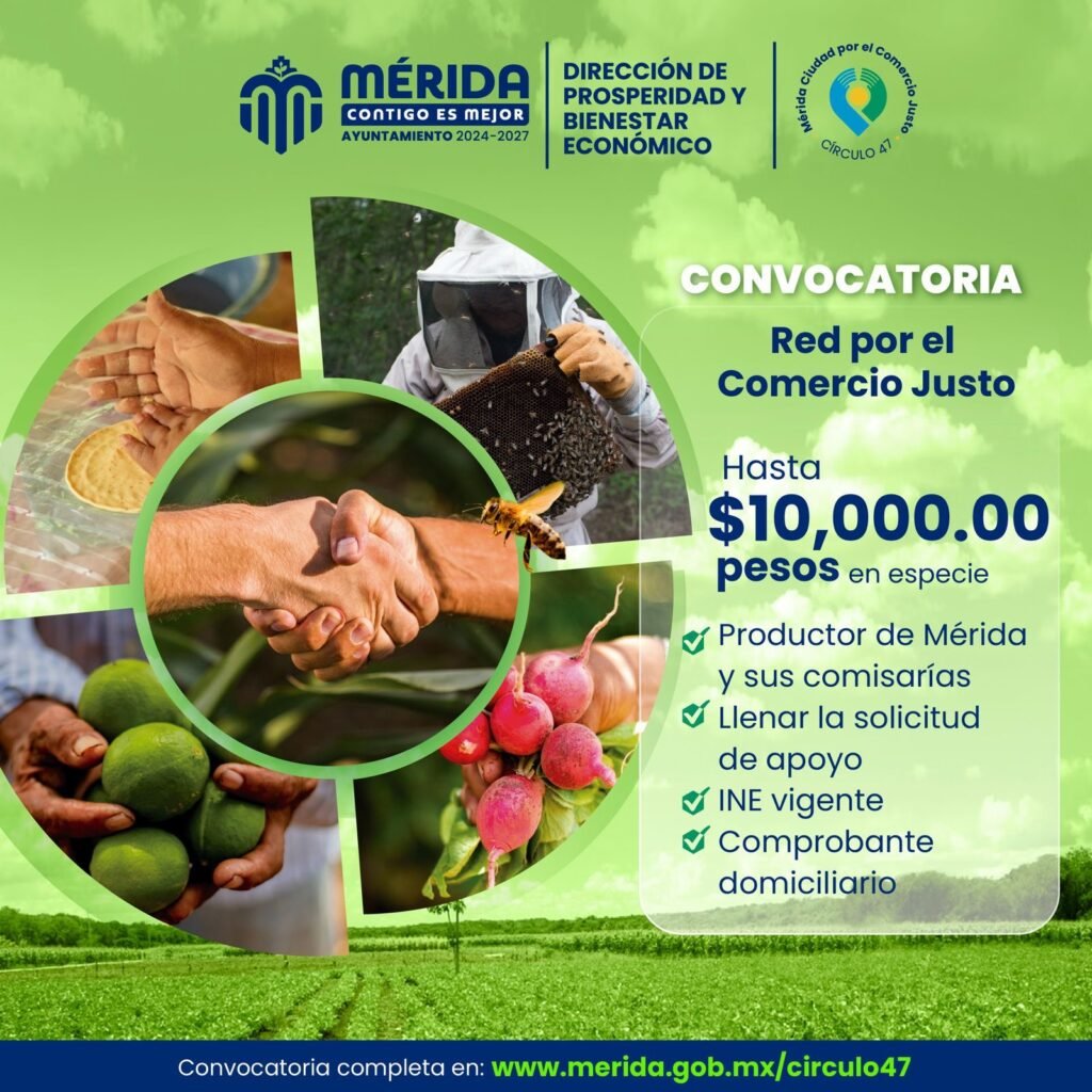 Mérida, Yucatán a 9 de marzo de 2026.- Con el objetivo de fortalecer la economía local y brindar mayores oportunidades a quienes elaboran y comercializan productos desde las comisarías y zonas conurbadas del municipio, el Ayuntamiento de Mérida impulsa el programa “Red por el Comercio Justo”, una iniciativa que busca apoyar a artesanos y productores mediante la entrega de apoyos en especie.