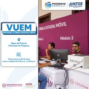 Progreso, Yuc 22 de marzo.– El H. Ayuntamiento de Progreso, encabezado por el alcalde Erik Rihani González, informó sobre la puesta en marcha de la Ventanilla Única Estatal Móvil en el municipio, una estrategia coordinada con el Gobierno del Estado de Yucatán para acercar servicios y trámites a la ciudadanía en un solo espacio.