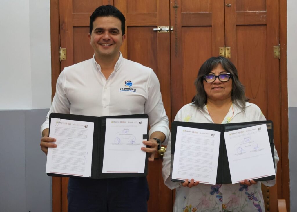 Progreso, Yuc 1 de abril– El H. Ayuntamiento de Progreso, encabezado por el alcalde Erik Rihani González, firmó un convenio de coordinación con la Secretaría de las Mujeres del Gobierno del Estado de Yucatán (SEMUJERES), con el objetivo de fortalecer la atención integral a niñas, adolescentes y mujeres del municipio, mediante la implementación de acciones conjuntas en materia de igualdad y prevención de la violencia.