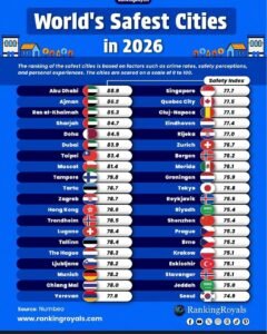 La clasificación de las ciudades más seguras se basa en factores como los índices de criminalidad, la percepción de seguridad y las experiencias personales. Las ciudades reciben una puntuación en una escala de 0 a 100, según la votación de expertos y viajeros internacionales.