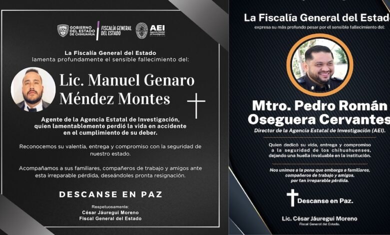 Las autoridades de Chihuahua confirmaron que, además de Pedro Román Oseguera, que llevaba más de medio año en el cargo, falleció el agente Manuel Genaro Méndez, mientras que los funcionarios estadounidenses no fueron identificados públicamente.