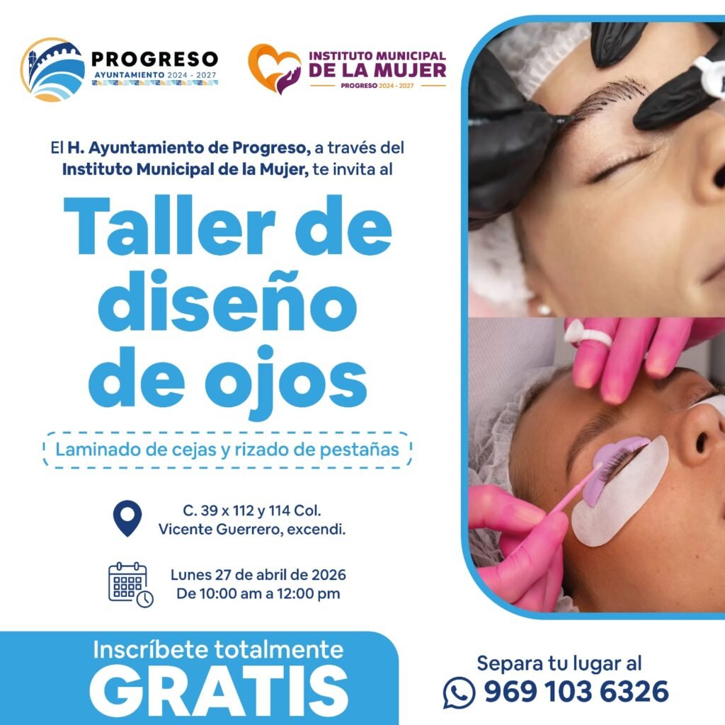 Progreso, Yuc 21 de abrl.– El H. Ayuntamiento de Progreso, encabezado por el alcalde Erik Rihani González, invita a las mujeres a participar en el taller de diseño de ojos, el cual tiene como finalidad acercar opciones de capacitación práctica para el desarrollo de habilidades en el municipio.